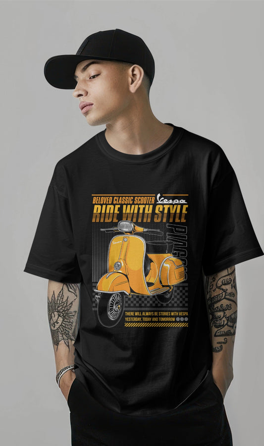 Vespa “Ride with Style” Retro Scooter Graphic Printed Oversized T-shirt